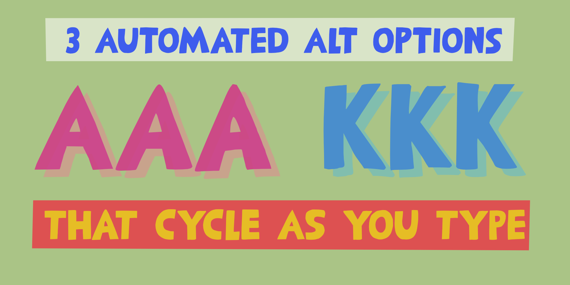 Mundbind NL comes with a monster load of diacritics (including Vietnamese) and two alternate glyphs for the lower case letters that will cycle as you type.