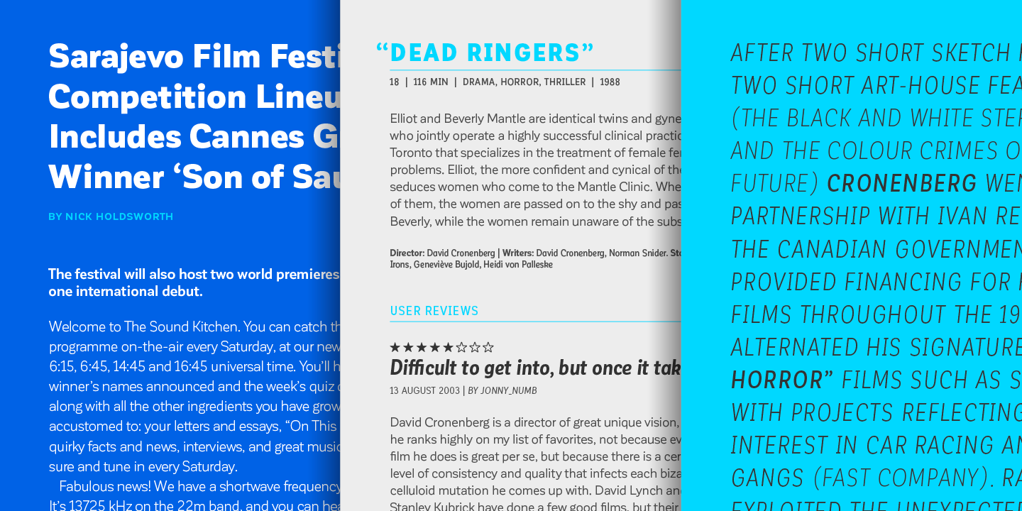 Couturier is all about haute couture: classy ready-to-use characters for each project and elegantly embroidered ligatures, alternative glyphs and beautiful swashes give the font an extremely elegant look. Couturier comes in 8 fonts that help you achieve a strong composition in your publishing projects. Its true italics with a humanist feel give each design a chic personality.