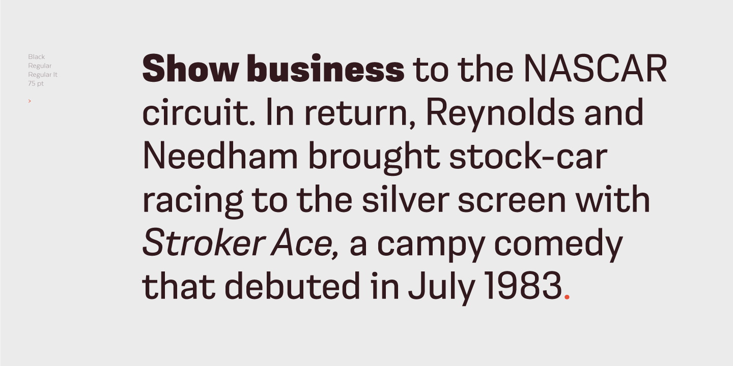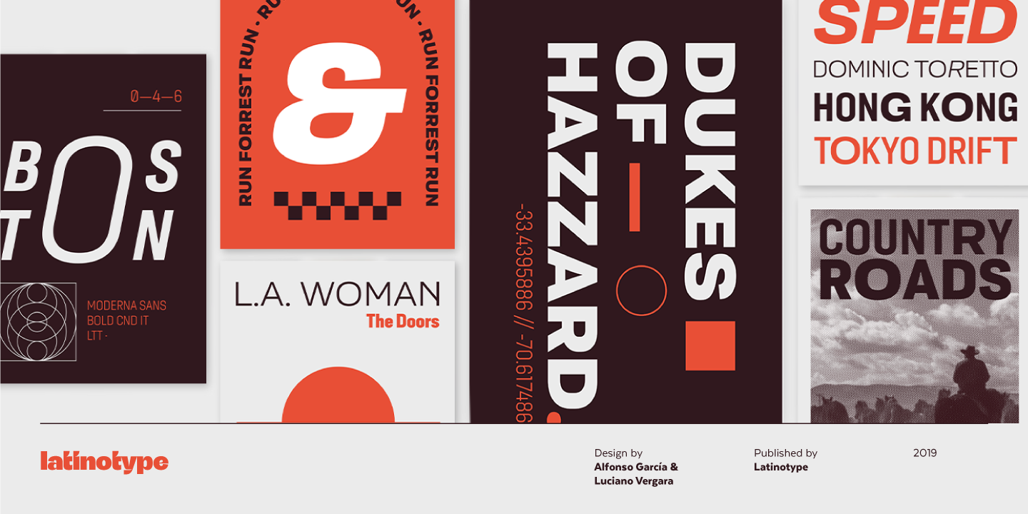 Moderna Sans is an excellent choice for branding and corporate design and a versatile 3-width workhorse suitable for newspaper or magazine headlines and subheadings. Moderna Sans was designed by Luciano Vergara in collaboration with Alfonso García.