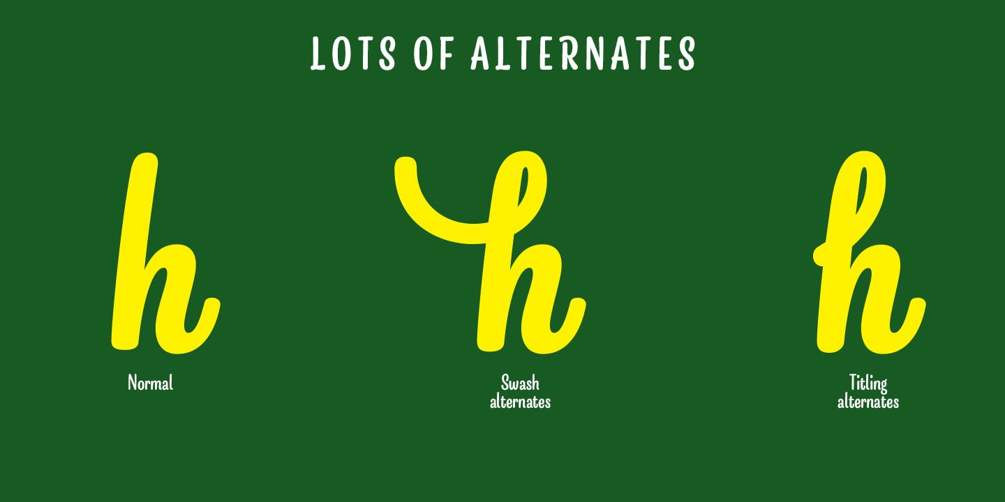 The script styles are packed with OpenType alternates for customizing your design. The family is perfect for branding, packaging and advertising purposes.